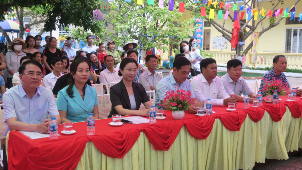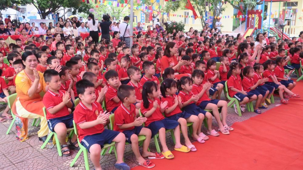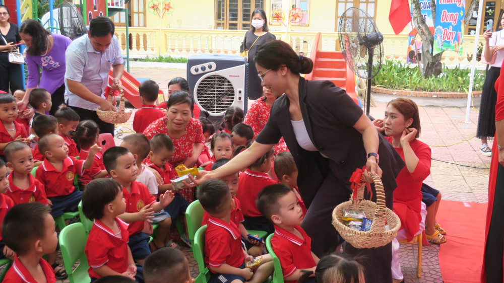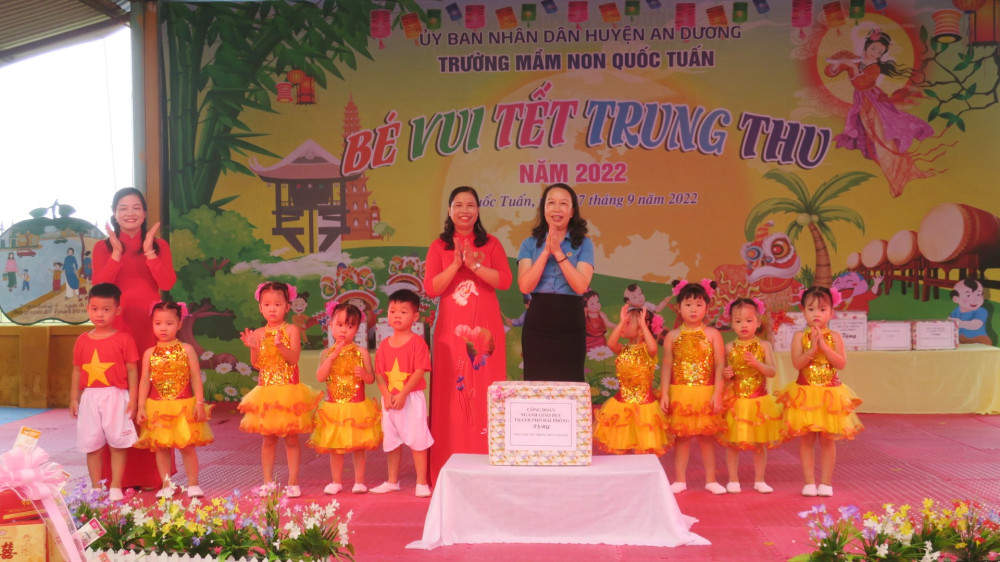 Trong chuyến đi, đoàn đến thăm các cháu Trường Mầm non Quốc Tuấn. Trường có tổng số 16 lớp trong đó có 04 lớp nhà trẻ, 12 lớp mẫu giáo, với 34 giáo viên và 476 học sinh. Trường được công nhận trường chuẩn quốc gia năm 2011 và được công nhận đạt tiêu chuẩn Chất lượng giáo dục cấp độ III vào năm 2014. Trường có 7 năm liên tục đạt danh hiệu tập thể Lao động xuất sắc, 2 lần được Bộ Giáo dục và Đào tạo tặng Bằng khen, 3 lần được UBND thành phố tặng Bằng khen. Năm học 2020-2021, trường được nhận Bằng khen của Thủ tướng Chính phủ và Bằng khen của Tổng Liên đoàn Lao động Việt Nam.