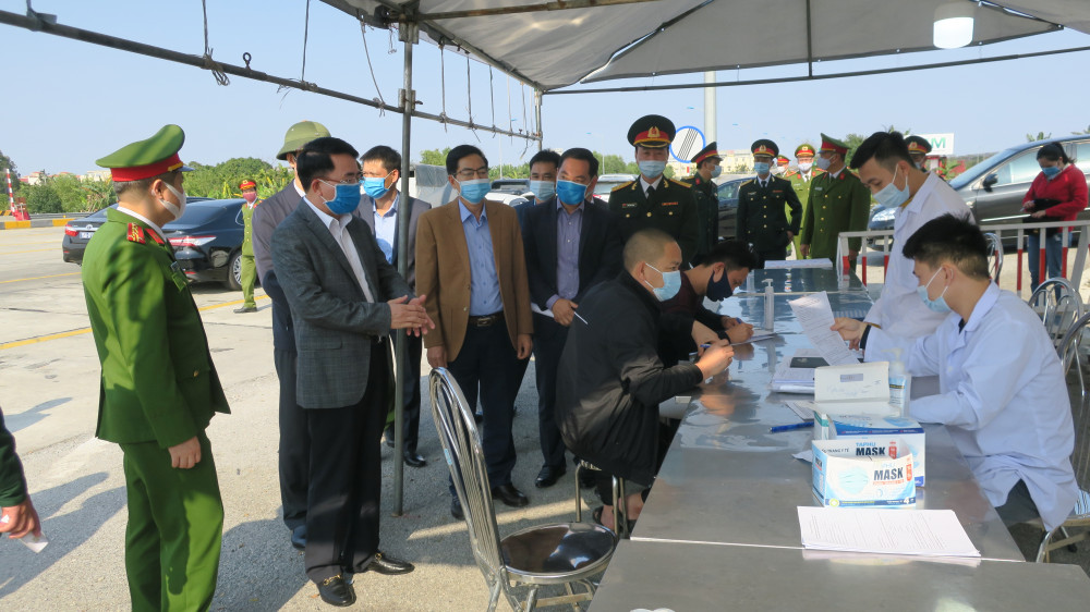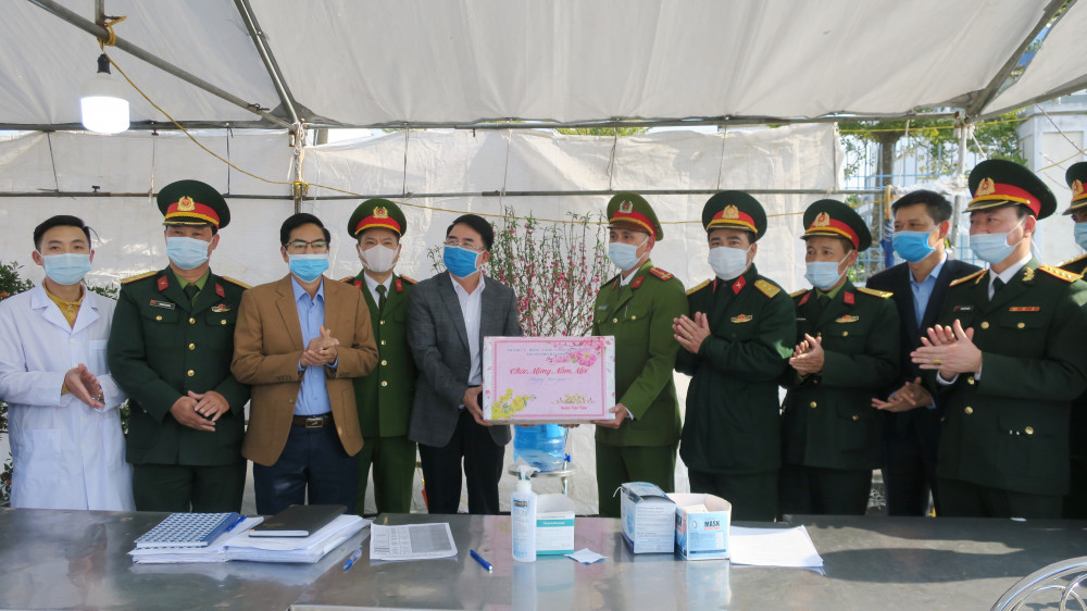 Tại đây, Phó Chủ tịch UBND thành phố Lê Khắc Nam thăm hỏi, động viên và tặng quà cán bộ, chiến sĩ và nhân viên y tế đang thực hiện nhiệm vụ đảm bảo không để dịch bệnh xâm nhập vào thành phố. Đồng chí cho biết, tình hình dịch bệnh vẫn tiếp tục diễn biến phức tạp, các tỉnh thành lân cận vẫn tiếp tục ghi nhận ca mắc mới. Đề nghị lực lượng công an, y tế, quân đội nâng cao tinh thần cảnh giác, bố trí kíp trực 24/24, kiểm soát chặt chẽ người ra vào thành phố, yêu cầu khai báo y tế đầy đủ, phát hiện kịp thời những trường hợp đi từ vùng dịch về đưa đi cách ly y tế tập trung, báo cho chính quyền địa phương liên quan đối với những trường hợp phải giám sát y tế tại nhà. Đề nghị các đơn vị chức năng bố trí ăn nghỉ hợp lý cho các lực lượng tham gia trực chốt trong dịp Tết này.