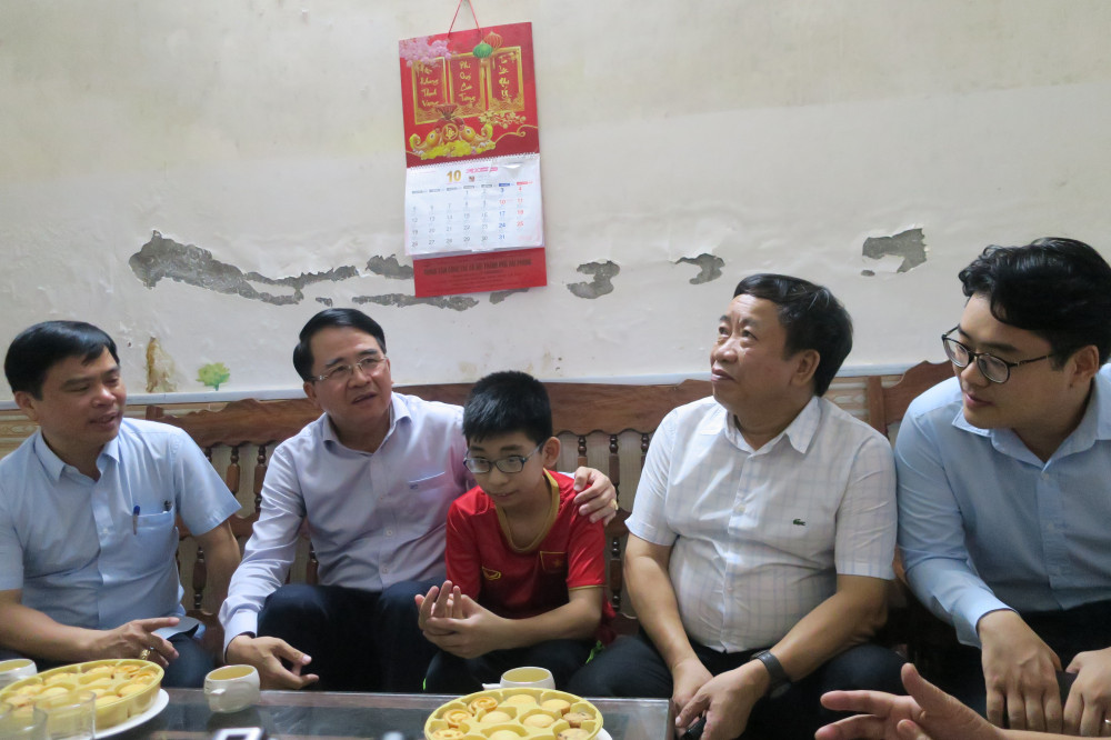 Thăm, tặng quà em Nguyễn Vũ Quang Anh, sinh năm 2008, học sinh lớp 7A3 Trường THCS Hồng Bàng, ở tại phường Minh Khai, đồng chí Lê Khắc Nam chia sẻ những khó khăn với gia đình em Quang Anh, từ khi còn nhỏ đã mồ côi cả cha lẫn mẹ, sống trong sự đùm bọc, yêu thương của ông bà. Phó Chủ tịch UBND thành phố động viên em Nguyễn Vũ Quang Anh cố gắng vượt qua hoàn cảnh khó khăn, tiếp tục học tập, rèn luyện, lớn lên trở thành người có ích cho gia đình và xã hội.