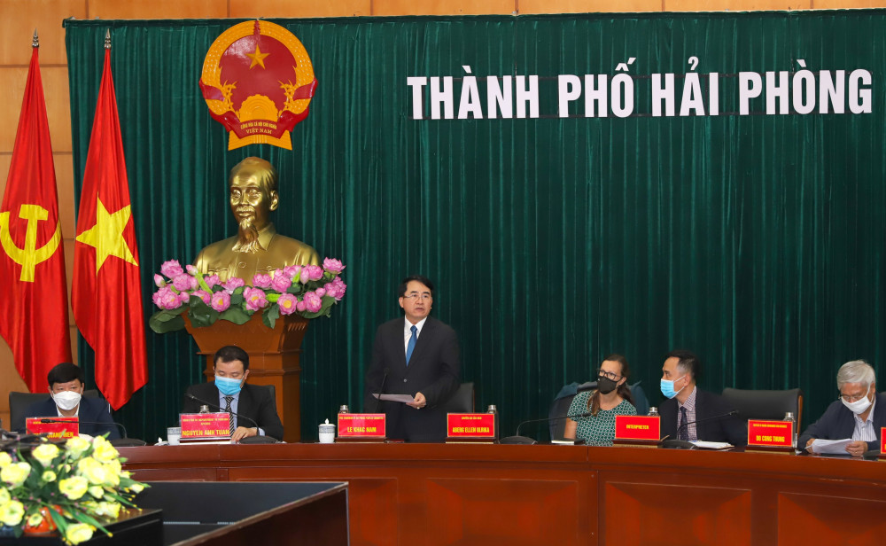 Phát biểu tại buổi tiếp và làm việc, Phó Chủ tịch UBND thành phố Lê Khắc Nam bày tỏ niềm vui mừng, phấn khởi khi trong bối cảnh dịch bệnh COVID-19 diễn biến phức tạp nhưng đoàn đánh giá Liên minh Quốc tế Bảo tồn thiên nhiên và tài nguyên thiên nhiên (IUCN) vẫn thu xếp sang làm việc với thành phố Hải Phòng và thẩm định thực địa tại Vịnh Hạ Long – Quần đảo Cát Bà. Đồng chí nhấn mạnh: Vịnh Hạ Long – quần đảo Cát Bà nếu được công nhận là “ Di sản thiên nhiên thế giới” sẽ góp phần quan trọng trong việc đảm bảo sự bền vững của môi trường mà Liên Hợp quốc đã đề ra trong mục tiêu phát triển thiên niên kỷ. Đến nay, hồ sơ đề cử đã đáp ứng các yêu cầu kỹ thuật, thành phố Hải Phòng cam kết sẽ triển khai thực hiện những hoạt động cụ thể với quyết tâm bảo vệ và phát huy tốt nhất giá trị và tính toàn vẹn của di sản trong thời gian tới. Đồng thời, Phó Chủ tịch UBND thành phố Lê Khắc Nam yêu cầu các cấp, ngành liên quan triển khai thực hiện tốt nhất nhiệm vụ được giao, tổ chức chương trình khảo sát thực địa phù hợp với tình hình thực tế, giúp chuyên gia nắm bắt, quan sát thực trạng, giá trị nổi bật, đặc hữu của đề cử di sản vịnh Hạ Long – Quần đảo Cát Bà.
