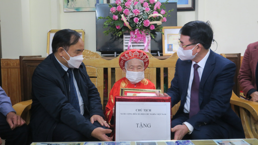 Sáng 10/2, Nhân dịp Tết Nguyên đán Nhâm Dần 2022, đồng chí Lê Khắc Nam, Phó Chủ tịch UBND thành phố cùng đại diện lãnh đạo các Sở, ngành, địa phương liên quan đi trao Thiếp mừng thọ của Chủ tịch nước cho công dân 100 tuổi trên địa bàn huyện Tiên Lãng.