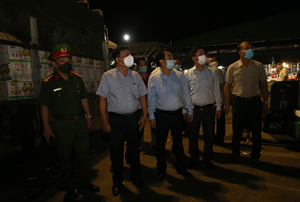 Vào lúc 3h00 sáng 3/8, đồng chí Phó Chủ tịch UBND thành phố Nguyễn Đức Thọ kiểm tra đột xuất công tác phòng, chống dịch COVID-19 tại chợ đầu mối rau, củ, quả phường Sở Dầu quận Hồng Bàng. Cùng đi có lãnh đạo các sở, ngành: Công Thương, Y tế, Công an thành phố; lãnh đạo quận Hồng Bàng.