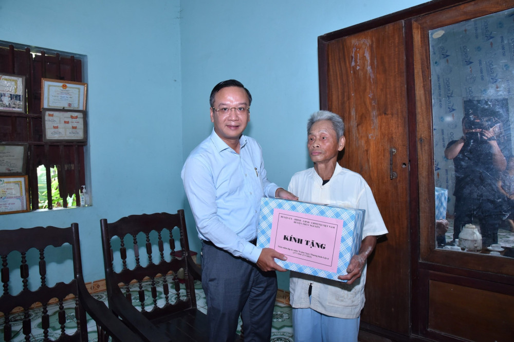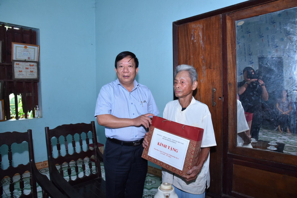 Thăm bà Đào Thị Nhài, vợ liệt sỹ Nguyễn Văn Sách tại thôn 7 xã Thủy Sơn. Liệt sỹ Nguyễn Văn Sách hi sinh ngày 25/1/1968 tại mặt trận Long An. Liệt sỹ và bà Đào Thị Nhài có một người con gái duy nhất là chị Nguyễn Thị Thìn, sinh năm 1965, là giáo viên đã nghỉ hưu. Phó Chủ tịch UBND thành phố Nguyễn Đức Thọ ân cần thăm hỏi, động viên gia đình và bày tỏ sự tri ân sâu sắc trước công lao đóng góp to lớn của các liệt sỹ, góp phần mang lại độc lập, tự do cho dân tộc, ấm no, hạnh phúc của Nhân dân.