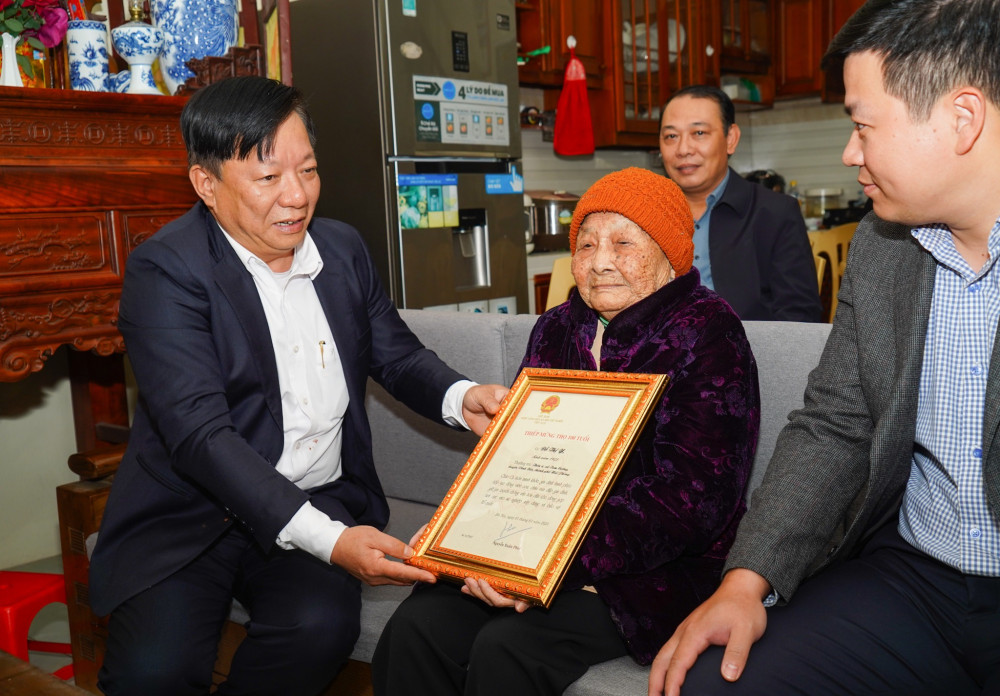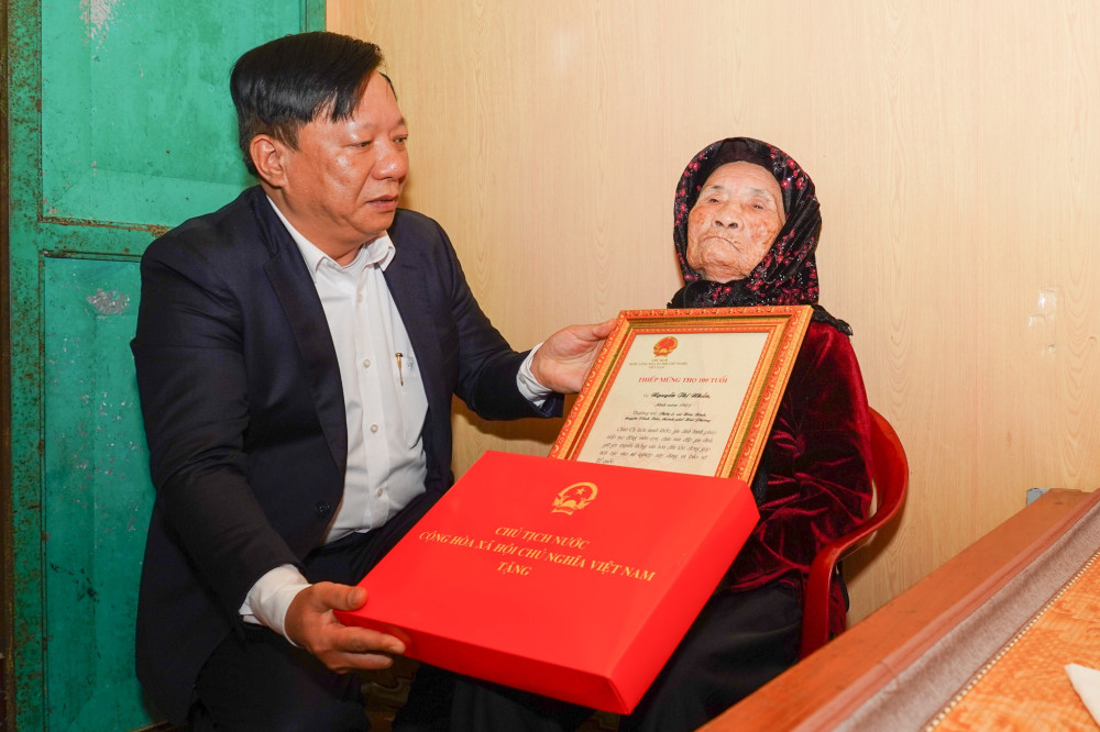 Trao Thiếp mừng thọ của Chủ tịch nước cho cụ Đỗ Thị Y, sinh năm 1923, tại thôn 4, xã Tam Cường, huyện Vĩnh Bảo và cụ Nguyễn Thị Nhẫn, sinh năm 1923, tại thôn 2, xã Hòa Bình, huyện Vĩnh Bảo, Phó Chủ tịch UBND thành phố Nguyễn Đức Thọ đã ân cần thăm hỏi điều kiện sinh hoạt, sức khỏe của các cụ và đời sống của các gia đình. Phó Chủ tịch nhấn mạnh, những năm qua, các cấp, ngành cùng chính quyền địa phương thành phố luôn quan tâm thực hiện tốt công tác chăm sóc, phụng dưỡng người cao tuổi theo chủ trương, đường lối của Đảng, chính sách, pháp luật của Nhà nước, thể hiện lòng kính trọng người cao tuổi. Phó Chủ tịch kính chúc các cụ luôn mạnh khỏe, gia đình hạnh phúc, tiếp tục sống vui, sống khỏe cùng con cháu và chúc các cụ đón một mùa Xuân vui tươi và hạnh phúc.