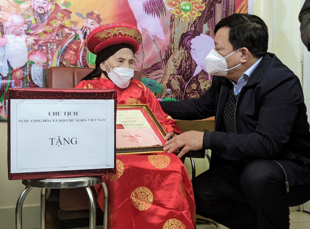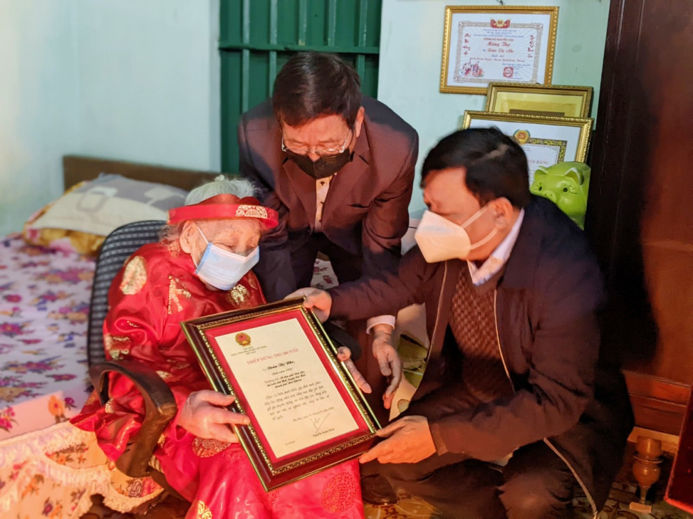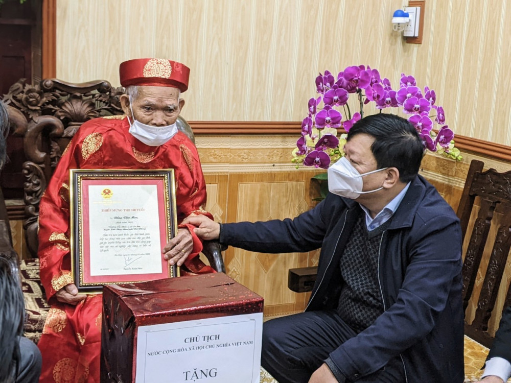 Chiều 11/2, Phó Chủ tịch UBND thành phố Nguyễn Đức Thọ đến trao quà và Thiếp mừng thọ của Chủ tịch nước cho 03 công dân 100 tuổi trên địa bàn huyện Cát Hải và Kiến Thụy, Hải Phòng nhân dịp Tết Nguyên đán Nhâm Dần 2022. Cùng đi có lãnh đạo Sở Lao động – Thương binh và Xã hội. lãnh đạo các địa phương liên quan.