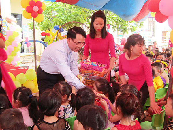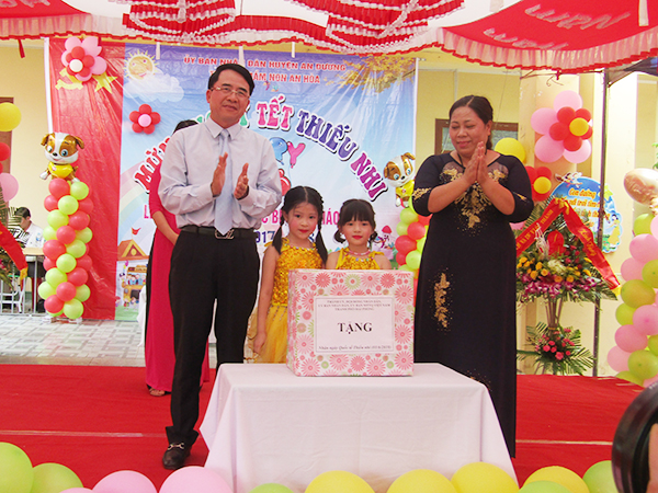 Đến thăm và tặng quà nhân dịp Ngày quốc tế thiếu nhi 1-6 cô và trò Trường mầm non An Hòa và cháu Lê Xuân Hải, Phó Chủ tịch UBNDTP Lê Khắc Nam chúc mừng tập thể nhà trường và gia đình cháu Lê Xuân Hải đã vượt qua hoàn cảnh khó khăn, hoàn thành tốt nhiệm vụ, công việc học hành, là những gương điển hình trong hoạt động dạy và học của ngành GD-ĐT thành phố Cảng.