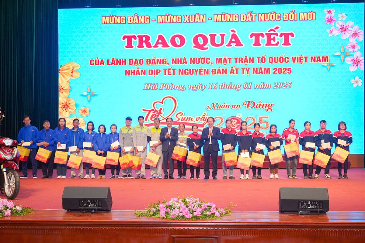 Tại Chương trình, Phó Thủ tướng Chính phủ cùng lãnh đạo thành phố Hải Phòng, Tổng LĐLĐ Việt Nam trao đại diện 100 suất quà Tết tặng công nhân lao động có hoàn cảnh khó khăn, gia đình chính sách, hộ nghèo trên địa bàn thành phố.