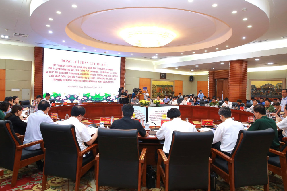 Sáng 26/9, tại Trung tâm Hội nghị thành phố Hải Phòng, Phó Thủ tướng Chính phủ Trần Lưu Quang làm việc với 03 tỉnh, thành phố Hải Phòng, Hải Dương và Quảng Ninh về thúc đẩy sản xuất kinh doanh, giải ngân vốn đầu tư công, xây dựng hạ tầng, xuất nhập khẩu…