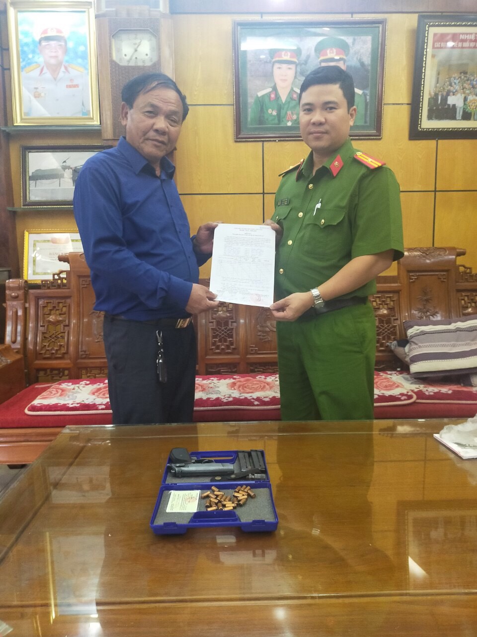 16h ngày 10-11, Công ty TNHH Vật liệu và Xây dựng Quyết Tiến, trụ sở ở thôn Pháp Cổ, xã Lại Xuân, huyện Thủy Nguyên, tự nguyện giao nộp 1 khẩu súng công cụ hỗ trợ MF38 và 23 viên đạn.