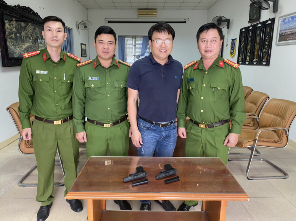 Chiều 5-11, có thêm một doanh nghiệp là Công ty TNHH Thương mại Vận tải Trung Thành, có trụ sở tại phường Sở Dầu, Hồng Bàng, đã tự nguyện giao nộp 2 khẩu súng công cụ hỗ trợ đã được trang bị trước đó cho tổ công tác của Phòng PC06.