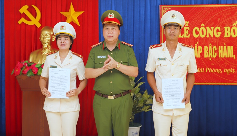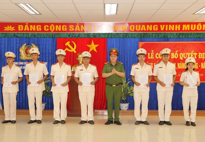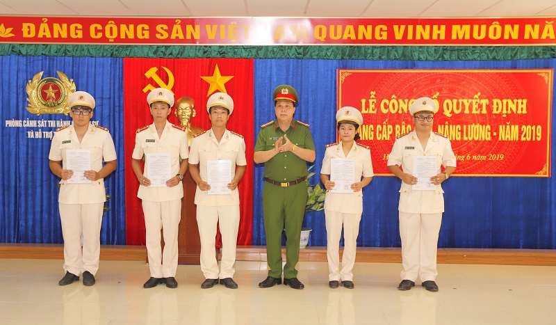 Đợt này, đơn vị có 2 đồng chí được nhận Quyết định của Bộ Trưởng Bộ Công an nâng lương Trung tá từ hệ số 6,6 lên 7,0; 5 đồng chí được nâng quân hàm sĩ quan nghiệp vụ từ Thượng úy lên Đại úy; 4 đồng chí được nâng quân hàm từ Trung úy lên Thượng úy và 4 đồng chí được nâng quân hàm từ Thiếu úy lên Trung úy.