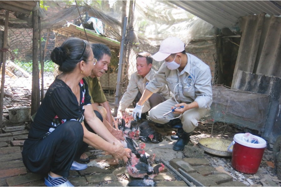 Nhân viên thú y đến các hộ chăn nuôi tiêm phòng cho đàn gia cầm.