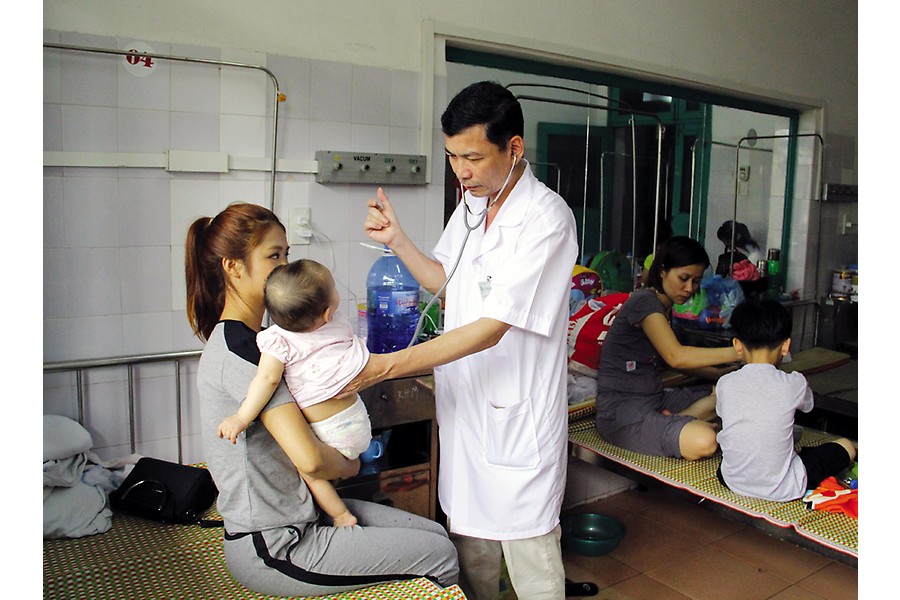 Khám cho trẻ nhỏ bị hóc dị vật tại Bệnh viện Trẻ em Hải Phòng. Ảnh: Diệu Hương