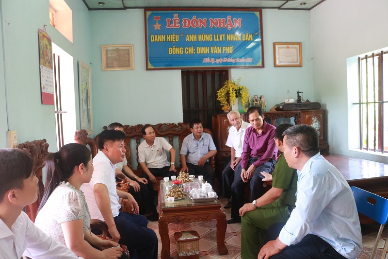 Đặc biệt, đoàn công tác đã tổ chức dâng hương, hoa, làm lễ thắp hương và thăm hỏi, tặng quà tại nhà thân nhân gia đình 2 Anh hùng Lực lượng vũ trang nhân dân của địa phương là Anh hùng Nguyễn Văn Hoàn (Liệt sĩ hi sinh trong kháng chiến chống Pháp) và Anh hùng Đinh Văn Phờ (Liệt sĩ hi sinh trong kháng chiến chống Mỹ).