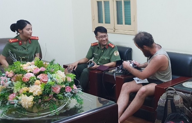 Trước đó, sáng ngày 27-8, thông qua số điện thoại đường dây nóng, Phòng Quản lý xuất nhập cảnh nhận được tin báo của khách sạn Bạch Đằng về việc lễ tân khách sạn này phát hiện thấy 1 balo bị đánh rơi ở đoạn ngã tư đường Lý Tự Trọng – Điện Biên Phủ.