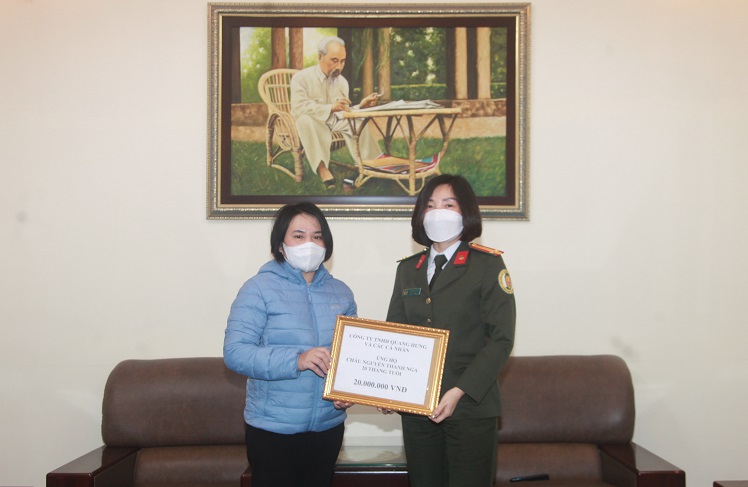 Đồng thời, Phòng Quản lý xuất nhập cảnh, Công an thành phố đã vận động doanh nghiệp và các nhà hảo tâm quyên góp kinh phí hỗ trợ cháu Nga chữa bệnh, trong đó Công ty TNHH Quang Hưng (Hải Phòng) và các cá nhân hỗ trợ 20 triệu đồng; Công ty Wow Diamond (Hải Phòng) hỗ trợ 10 triệu đồng.