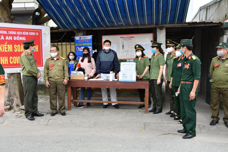 Đoàn công tác cũng thăm hỏi, động viên 2 chiến sỹ nữ (chốt chân cầu Nghìn, Trạm thu phí đường cao tốc Hà Nội- Hải Phòng, An Lão) trong 19 cán bộ đơn vị xung phong tham gia lực lượng tăng cường cho 10 chốt kiểm soát phòng chống dịch bệnh liên ngành do UBND thành phố chỉ đạo.