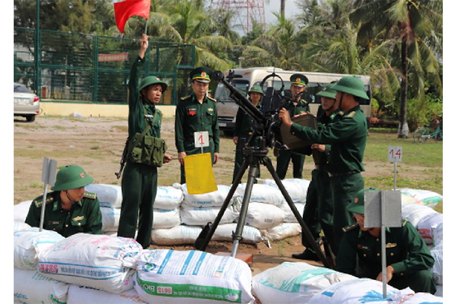 Cán bộ, chiến sĩ BĐBP huấn luyện thực hành tình huống triển khai hỏa lực bảo vệ đơn vị.