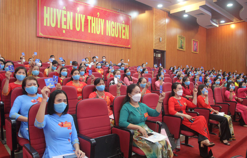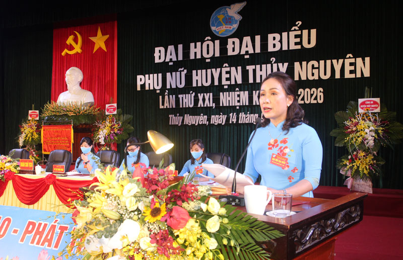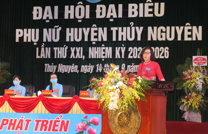 Báo cáo tại Đại hội, đồng chí Phạm Thị Khuê, Chủ tịch LHPN huyện Thủy Nguyên nêu rõ: Nhiệm kỳ 2016-2021, cán bộ, hội viên, phụ nữ huyện đã phấn đấu hoàn thành toàn diện các mục tiêu, nhiệm vụ Nghị quyết Đại hội Phụ nữ các cấp đề ra (hoàn thành 8/8 nhóm chỉ tiêu (với 16 chỉ tiêu) Nghị quyết Đại hội, trong đó 14/16 chỉ tiêu vượt từ 2 đến trên 250%). Thực hiện tốt công tác tuyên truyền, giáo dục vận động phụ nữ; hoạt động chăm lo, hỗ trợ phụ nữ phát triển kinh tế, bảo vệ môi trường, xây dựng gia đình hạnh phúc; công tác xây dựng và phát triển tổ chức Hội được giữ vững; phong trào thi đua diễn ra sôi nổi. Hoạt động của các cấp Hội có những đóng góp tích cực góp phần quan trọng trong việc hoàn thành thắng lợi các nhiệm vụ chính trị, kinh tế, văn hóa, xã hội, an ninh, quốc phòng của địa phương.