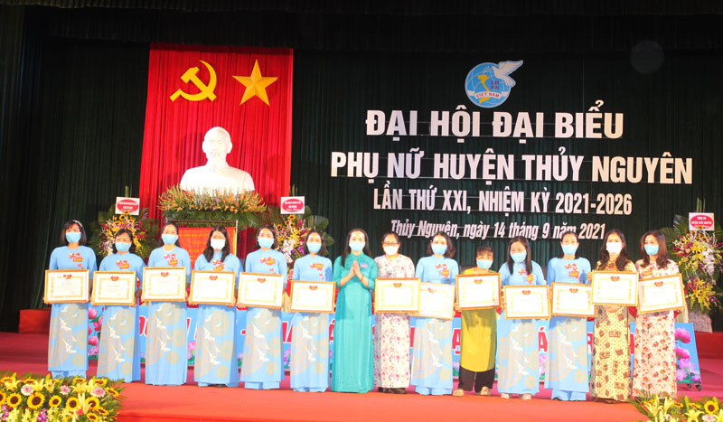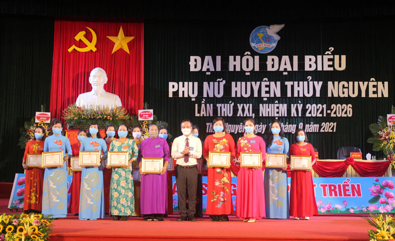 Nhân dịp này, 6 tập thể, 7 cá nhân được nhận Bằng khen của Hội LHPN thành phố; 18 tập thể, 40 cá nhân được nhận Giấy khen của UBND huyện Thủy Nguyên đã có thành tích xuất sắc trong công tác Hội và phong trào phụ nữ nhiệm kỳ 2016-2021.