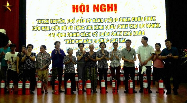 Ngoài ra, trong năm 2018, bằng nguồn xã hội hóa, UBND phường đã tặng miễn phí 100 bình chữa cháy cho các hộ nghèo, gia đình chính sách có hoàn cảnh khó khăn trên địa bàn.