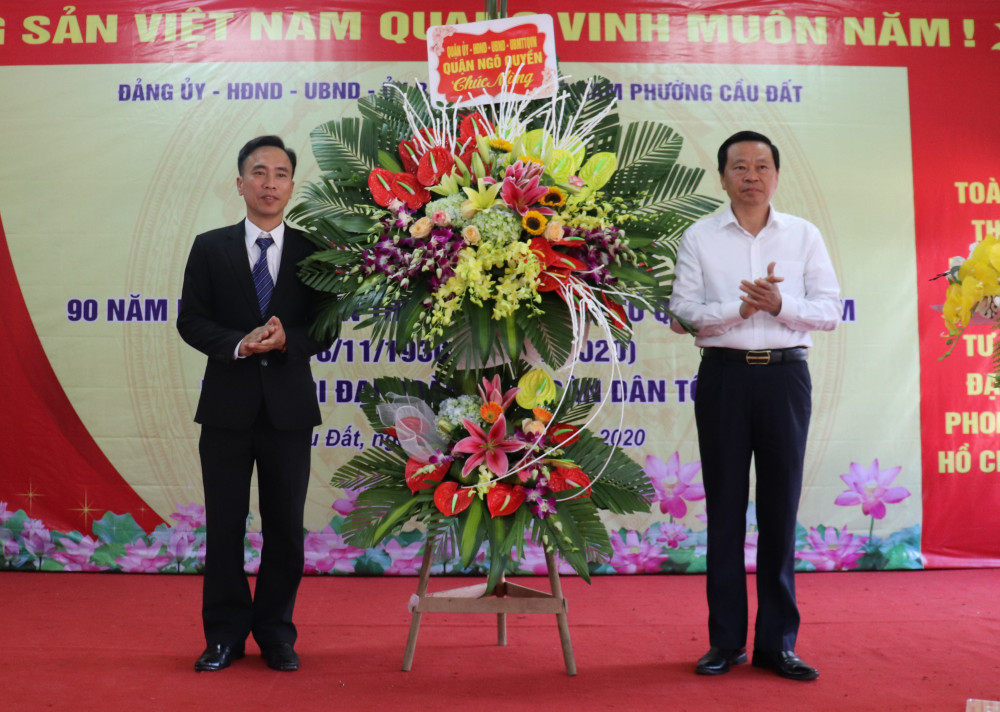Chiều 7/11, Đảng ủy-HĐND-UBND-Ủy ban MTTQ Việt Nam phường Cầu Đất tổ chức lễ kỷ niệm 90 năm Ngày truyền thống Mặt trận Tổ quốc Việt Nam (18-11-1930 * 18-11-2020), Ngày hội đại đoàn kết toàn dân tộc. Đây là đơn vị được chọn tổ chức điểm của quận Ngô Quyền. Tới dự có đồng chí Đào Trọng Đức, Ủy viên Ban Thường vụ Thành ủy, Trưởng ban Ban Tổ chức Thành ủy và các đồng chí lãnh đạo quận Ngô Quyền.