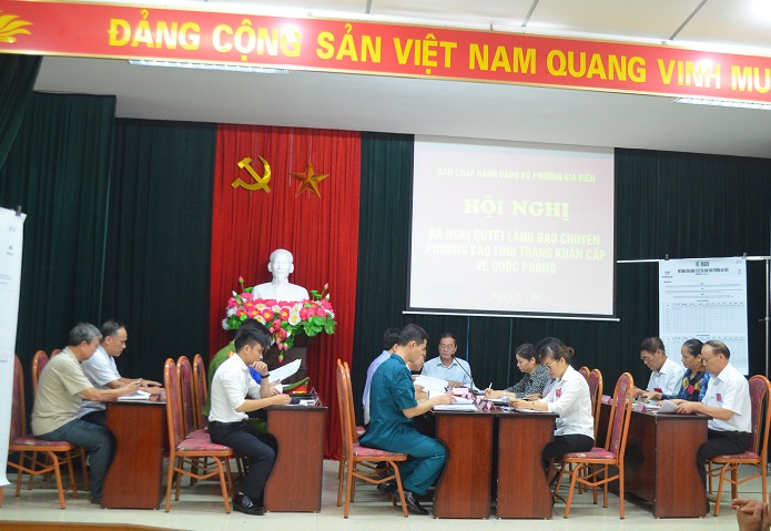Tại cuộc diễn tập chiến đấu phòng thủ năm 2018, phường Gia Viên đã triển khai các nội dung bao gồm: tổ chức hội nghị của BCH Đảng bộ phường (mở rộng) ra nghị quyết lãnh đạo chuyển địa phương vào tình trạng khẩn cấp về quốc phòng (ảnh). UBND phường triển khai nhiệm vụ chuyển địa phương vào tình trạng chiến tranh, chuyển lực lượng vũ trang từ trạng thái sẵn sàng chiến đấu cao lên trạng thái sẵn sàng chiến đấu toàn bộ.
