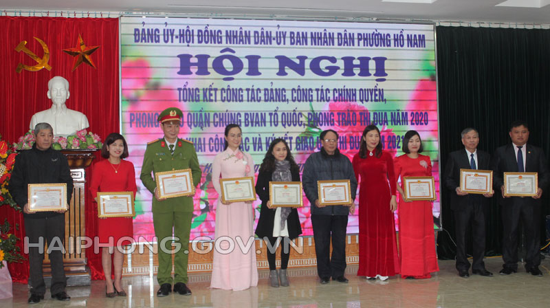 Chiều 4/1, phường Hồ Nam, quận Lê Chân tổ chức Hội nghị tổng kết công tác Đảng, chính quyền, phong trào quần chúng bảo vệ an ninh Tổ quốc, phong trào thi đua năm 2020; triển khai công tác và ký kết giao ước thi đua năm 2021.