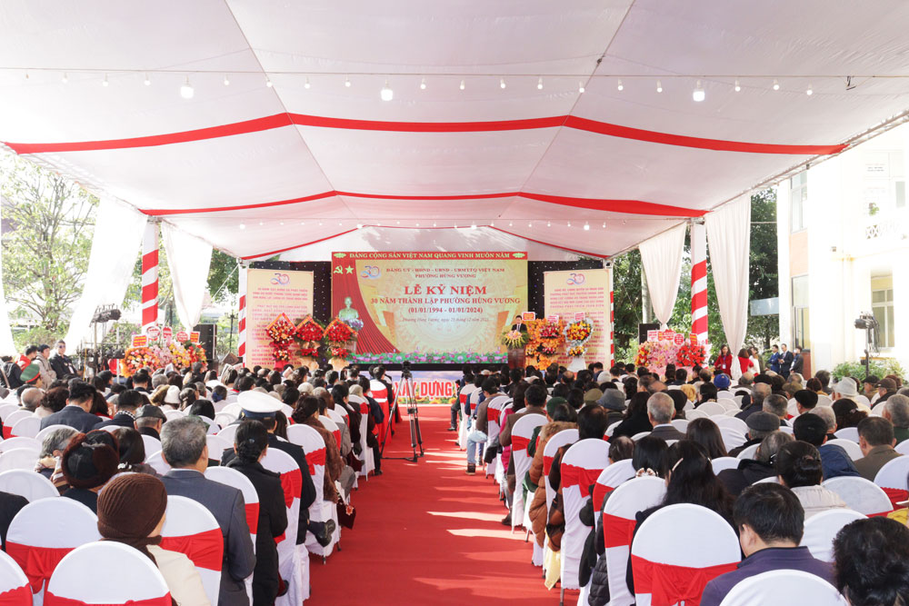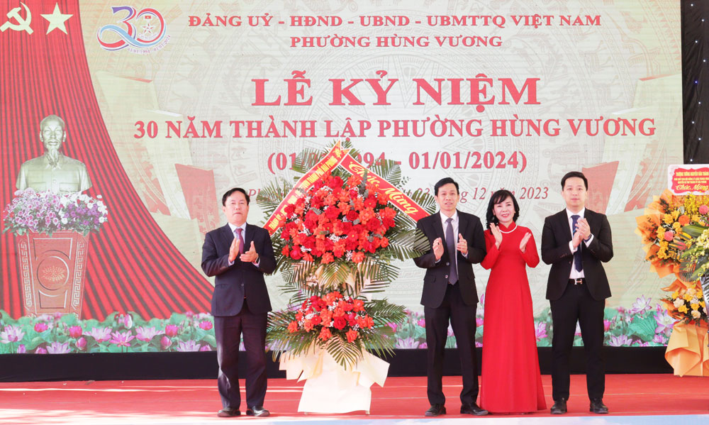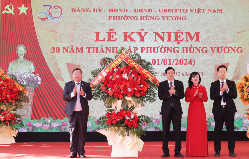Sáng 23/12, Đảng ủy-HĐND-UBND-Ủy ban MTTQ Việt Nam phường Hùng Vương (quận Hồng Bàng) tổ chức Lễ kỷ niệm 30 năm ngày thành lập phường (01/01/1994-01/01/2024) và ra mắt cuốn lịch sử Đảng bộ phường.