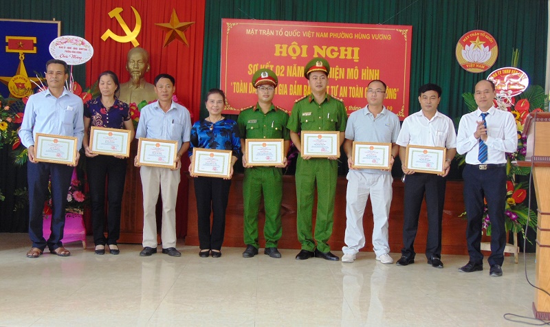Nhân dịp này, đại diện Uỷ ban MTTQ Việt Nam thành phố trao bằng khen tặng 1 tập thể, 1 cá nhân. UBND quận Hồng Bàng, UBND phường Hùng Vương tặng giấy khen nhiều tập thể, cá nhân có thành tích xuất sắc trong xây dựng, triển khai mô hình.