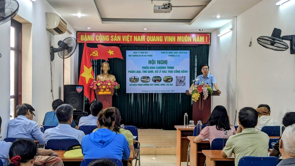 Để tiếp tục hình thành, duy trì thói quen đổ và phân loại rác một cách bền vững, cũng như nâng cao hơn nữa hiệu quả công tác thu gom, vận chuyển, xử lý chất thải rắn sinh hoạt đặc biệt là rác thải cồng kềnh trên địa bàn phường. Mới đây, UBND phường Lê Lợi và Công ty TNHH MTV Môi trường đô thị Hải Phòng cũng tiếp tục phối hợp để triển khai Chương trình Phân loại, thu gom, xử lý rác thải cồng kềnh tới các Tổ dân phố.