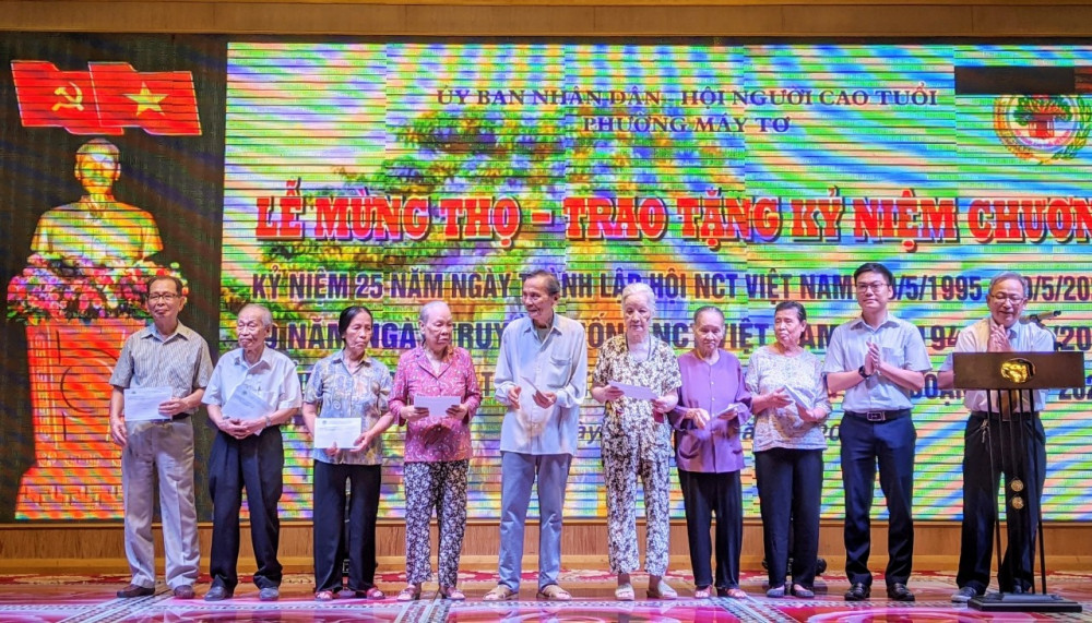 Nhân Kỷ niệm 79 năm Ngày truyền thống Người cao tuổi Việt Nam (6/6/1941 – 6/6/2020). Sáng 4/6 tại Trung tâm Hội nghị tiệc cưới Hải Đăng Plaza, UBND phường Máy Tơ (Quận Ngô Quyền) phối hợp với Hội Người cao tuổi của phường tổ chức Lễ mừng thọ cho 231 hội viên Hội Người cao tuổi có tuổi thọ 70, 75, 80, 85 và 95 tuổi; chúc thọ bách niên giai lão cho 2 cụ 100 tuổi và trao tặng Kỷ niệm chương cho 7 hội viên. Đồng chí Đào Trọng Đức Thành ủy viên, Bí thư Quận ủy Ngô Quyền tới dự và chúc thọ các cụ.