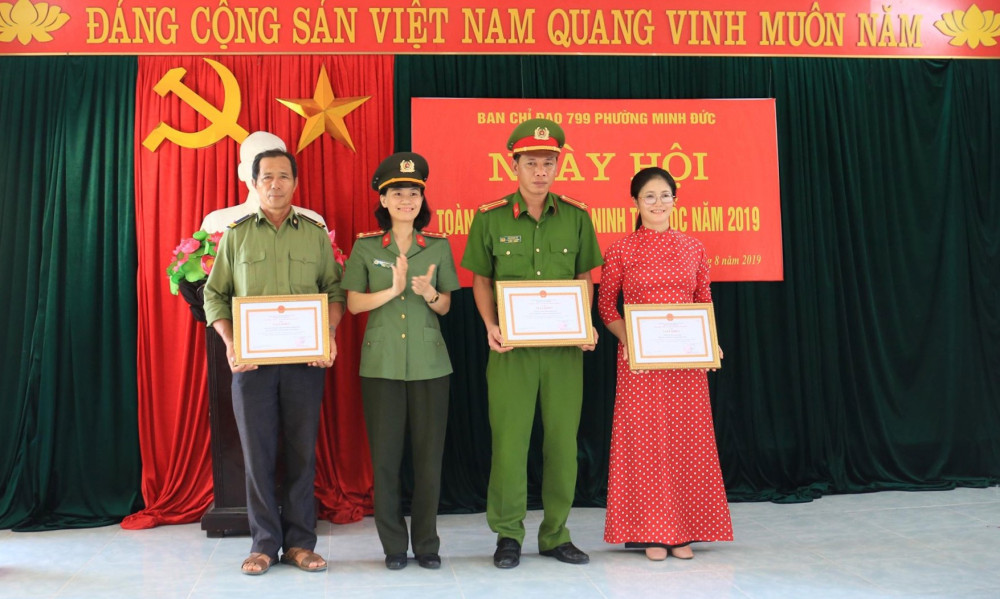 Để kịp thời biểu dương, khen thưởng các tập thể, cá nhân có thành tích xuất sắc trong phong trào Toàn dân bảo vệ ANTQ, nhân dịp này, Giám đốc CATP đã tặng giấy khen cho 3 tập thể, 5 cá nhân; UBND phường Minh Đức tặng giấy khen cho 2 tập thể, 8 cá nhân.