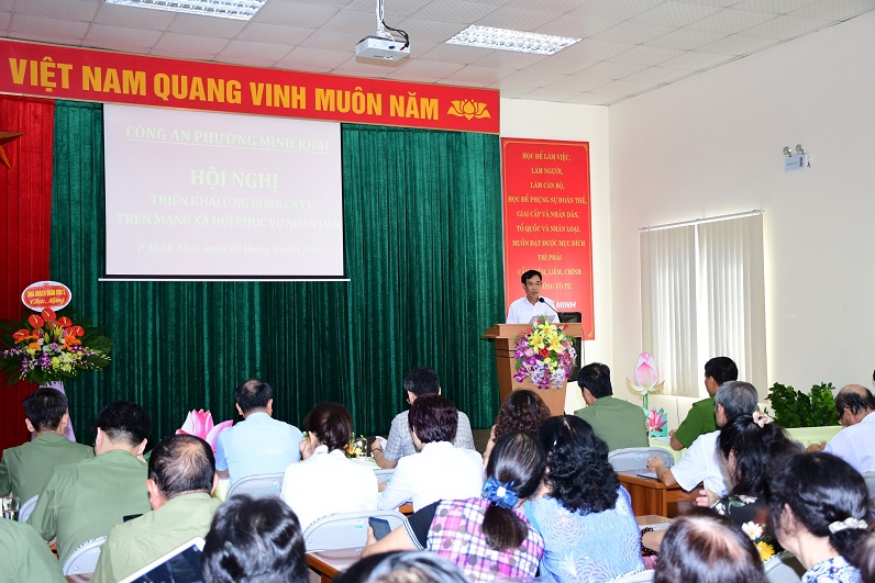 Đồng chí Đoàn Hồng Thắng, Phó Bí thư Đảng ủy, Chủ tịch UBND phường Minh Khai khẳng định, với những nỗ lực của lực lượng Công an sẽ góp phần tăng cường sức mạnh của thế trận lòng dân trong xây dựng phong trào Toàn dân bảo vệ An ninh Tổ quốc, giữ vững địa bàn phường Minh Khai là địa bàn an toàn, mạnh về CNTT, đẩy nhanh quá trình cải cách hành chính trên địa bàn phường.