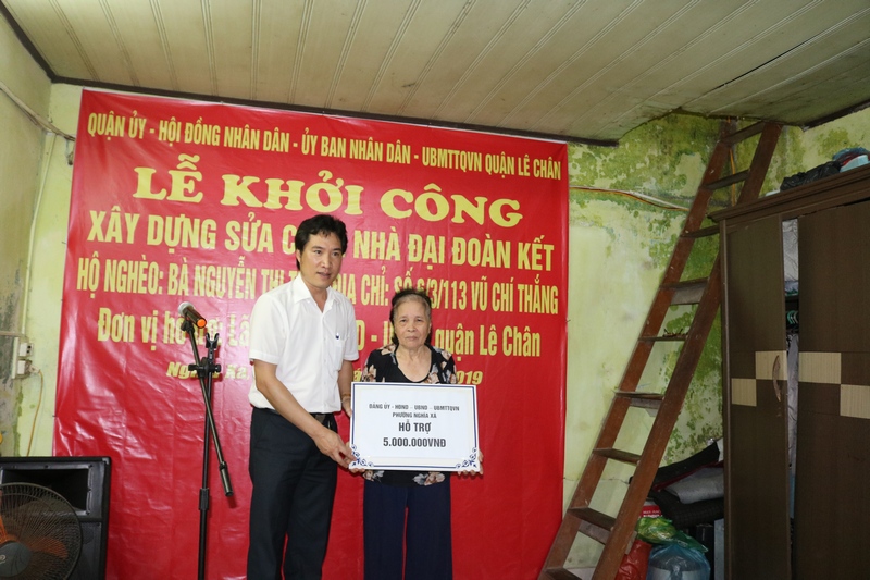 Phường Nghĩa Xá vừa khởi công sửa chữa nhà ở cho bà Nguyễn Thị Tuyên, ở số nhà 1/35/7 Đường vòng Cầu Niệm.