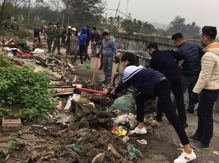Các đoàn viên, thanh niên phường Ngọc Hải tham gia dọn dẹp vệ sinh