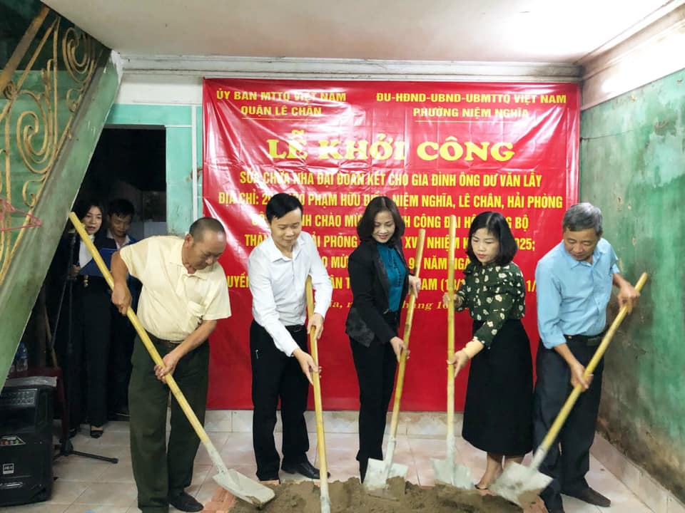 Nhân kỷ niệm 90 năm ngày truyền thống MTTQ Việt Nam (18-11-1930 * 18-11-2020) và chào mừng thành công Đại hội Đảng bộ thành phố lần thứ XVI, nhiệm kỳ 2020-2025, vừa qua phường Niệm Nghĩa, quận Lê Chân tổ chức khởi công sửa nhà “Đại đoàn kết” tặng gia đình ông Dư Văn Lẫy, ở số nhà 29/4/170 Phạm Hữu Điều, phường Niệm Nghĩa và ra mắt mô hình ngõ tự quản.