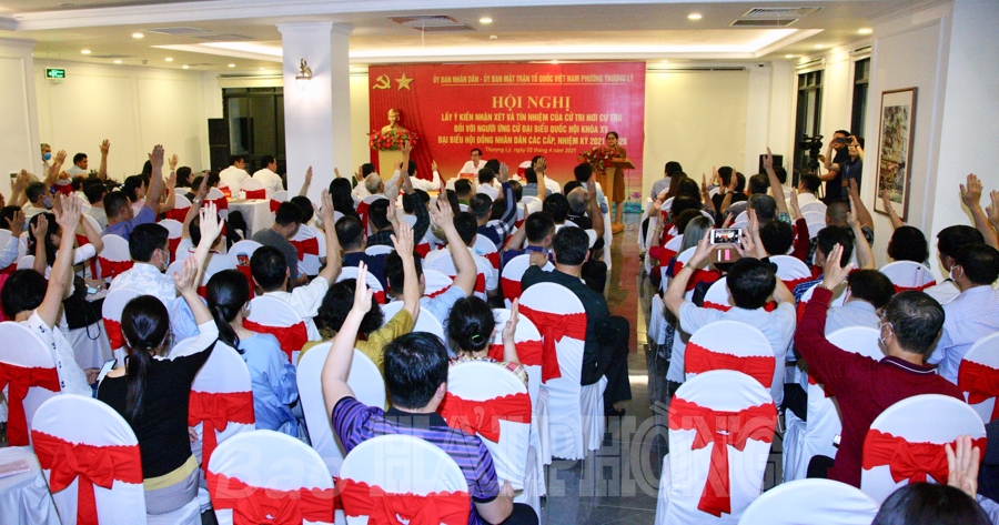 Sau khi nghe tóm tắt tiểu sử, quá trình công tác đối với người được giới thiệu ứng cử đại biểu Quốc hội khóa 15 và đại biểu HĐND các cấp nhiệm kỳ 2021-2026, các cử tri phát biểu ý kiến nhận xét, bày tỏ sự tín nhiệm cao đối với các ứng cử viên. Cử tri đánh giá, bản thân và gia đình 7 ứng cử viên luôn chấp hành tốt các chủ trương, đường lối, chính sách của Đảng, pháp luật của Nhà nước và các quy định của địa phương; có lập trường, tư tưởng chính trị vững vàng, đạo đức tốt, có lối sống giản dị, chân thành, đoàn kết, gần gũi, gắn bó với bà con xóm phố. Các ứng cử viên mặc dù công việc bận rộn nhưng đều tích cực tham gia các phong trào và hoạt động của địa phương… 100% số cử tri nhất trí tán thành đối với 7 người được giới thiệu ứng cử đại biểu Quốc hội và đại biểu HĐND các cấp nhiệm kỳ 2021-2026.