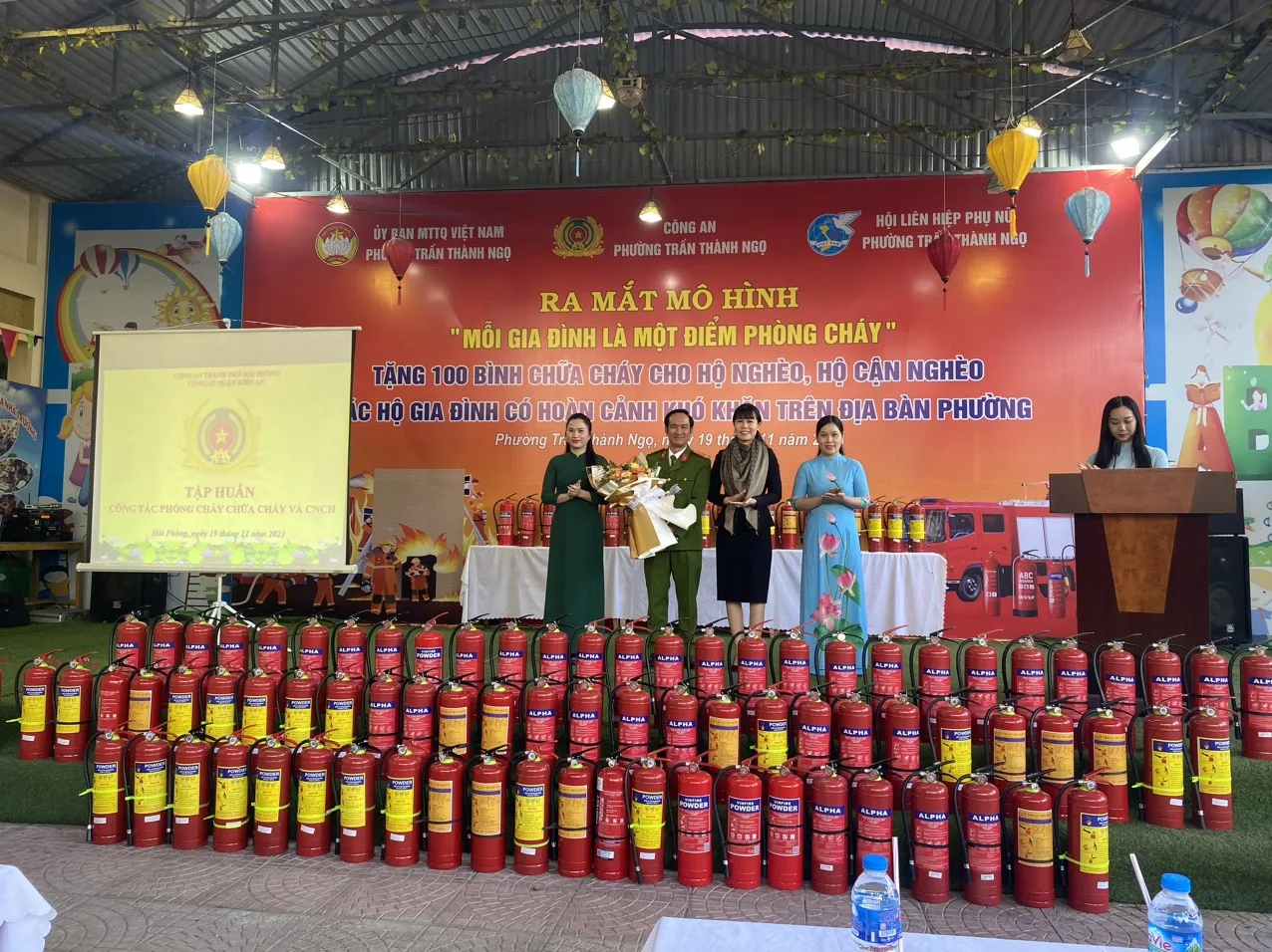 Nhân dịp này, 100 gia đình thuộc hộ nghèo, cận nghèo và các hộ có hoàn cảnh khó khăn trên địa bàn phường đã được tặng bình chữa cháy.