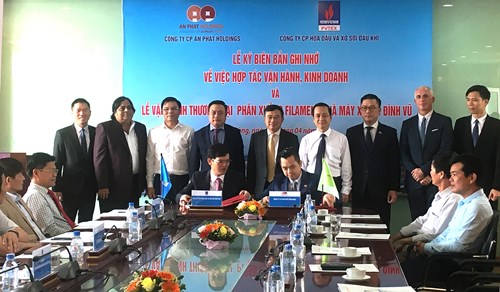 Sáng nay, tại Hải Phòng, Công ty CP Hóa dầu và Xơ sợi Dầu khí (PVTEX) tiến hành lễ ký Biên bản ghi nhớ về Hợp tác sản xuất kinh doanh (SXKD) với liên danh Tập đoàn An Phát và các đối tác nước ngoài.