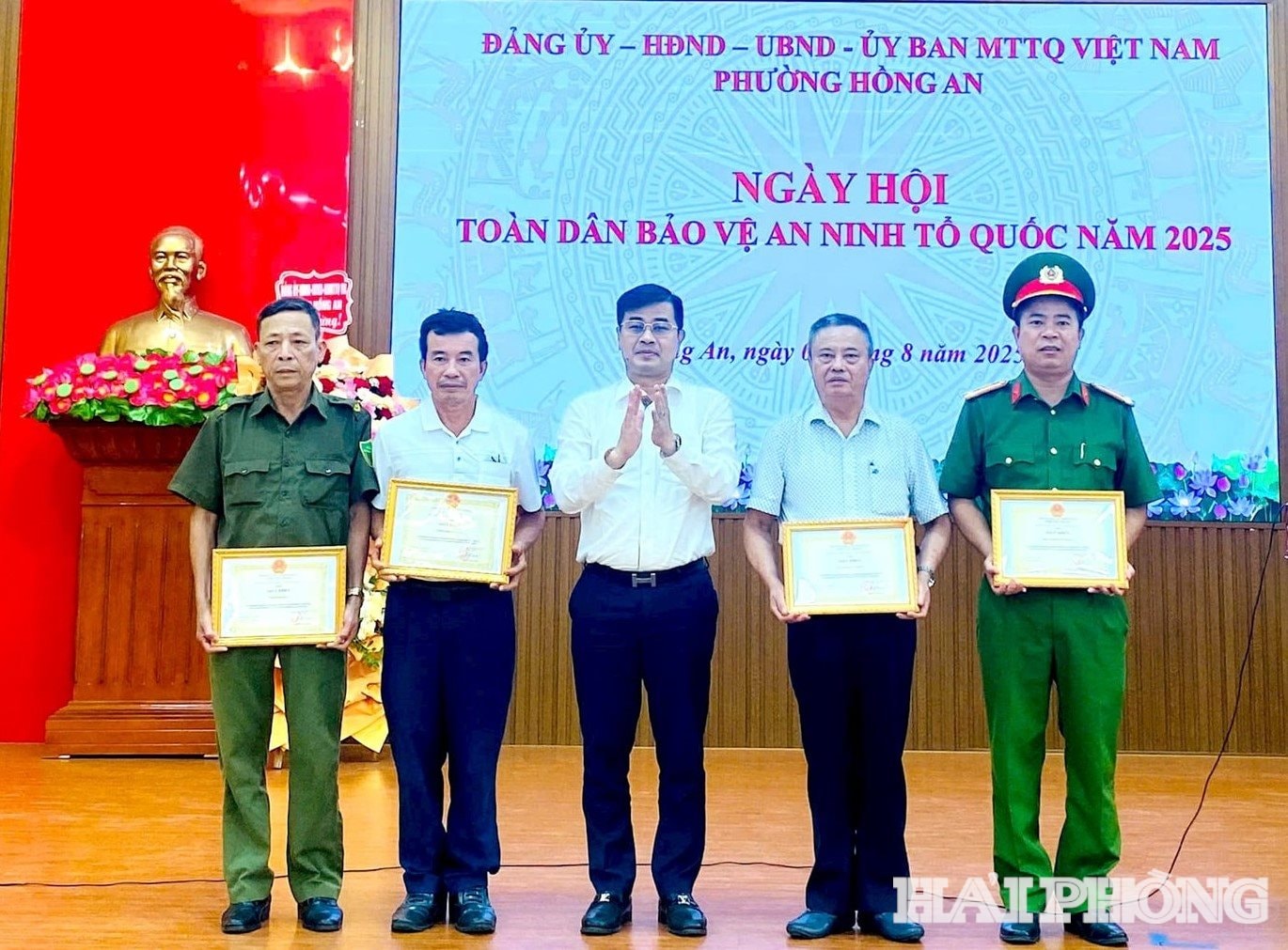 Dịp này, Chủ tịch UBND phường Hồng An tặng giấy khen cho 5 tập thể và 15 cá nhân có thành tích xuất sắc trong xây dựng phong trào Toàn dân bảo vệ an ninh Tổ quốc năm 2025.