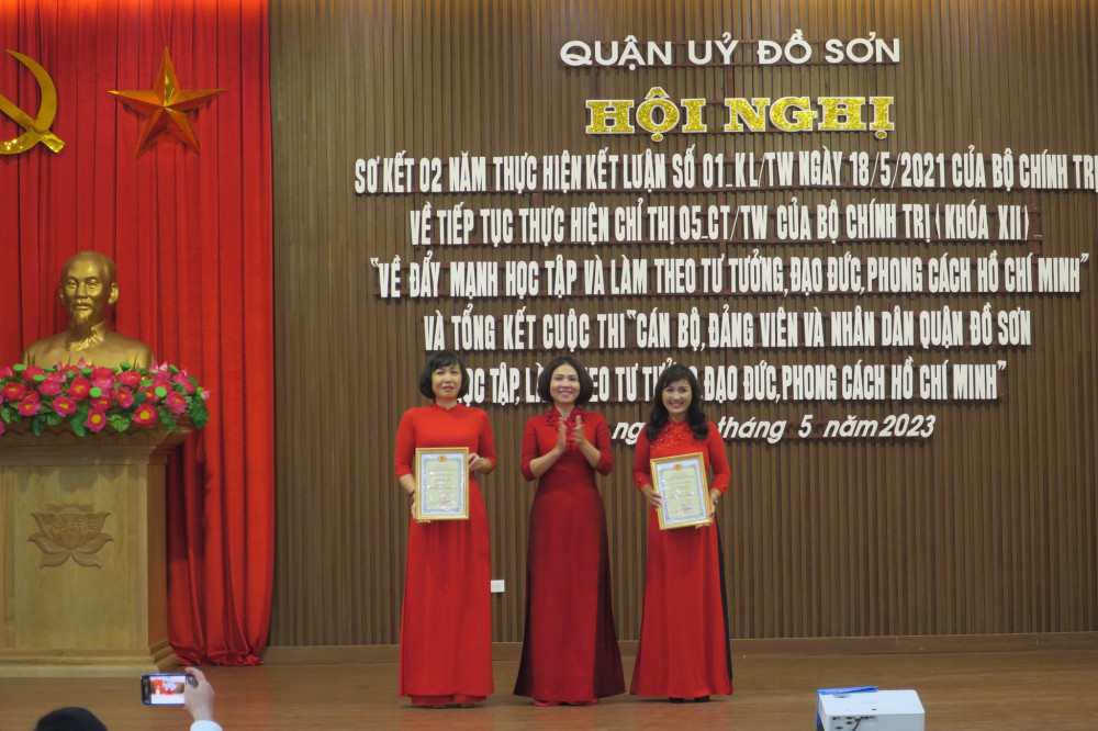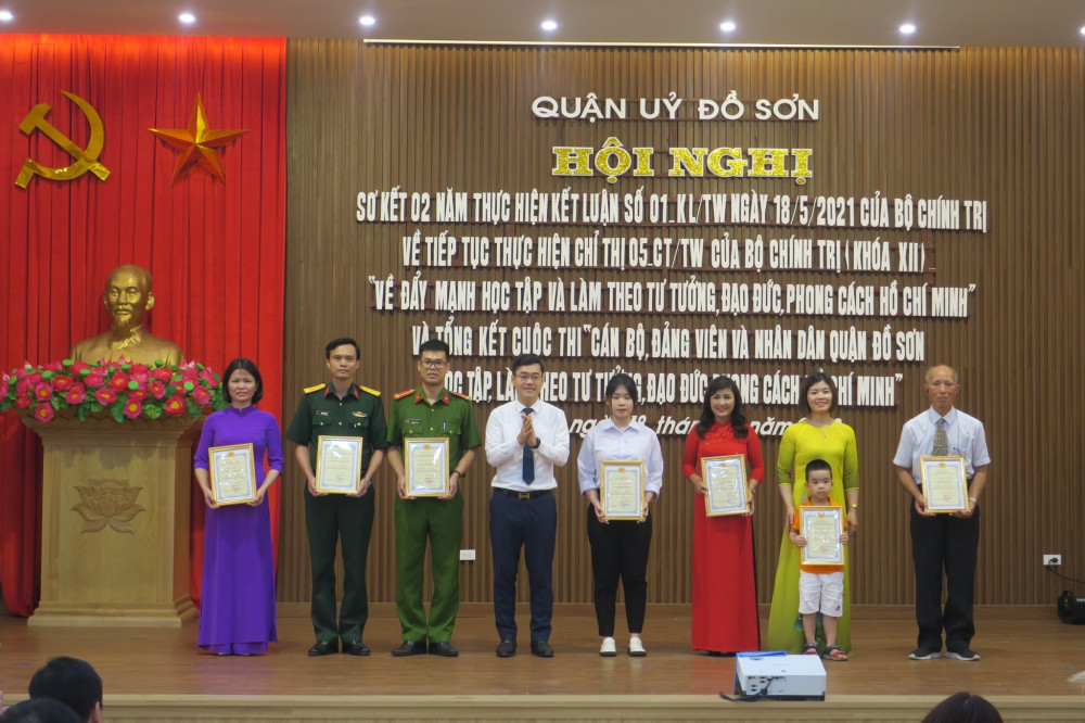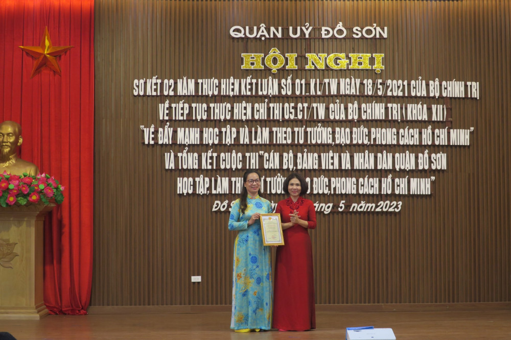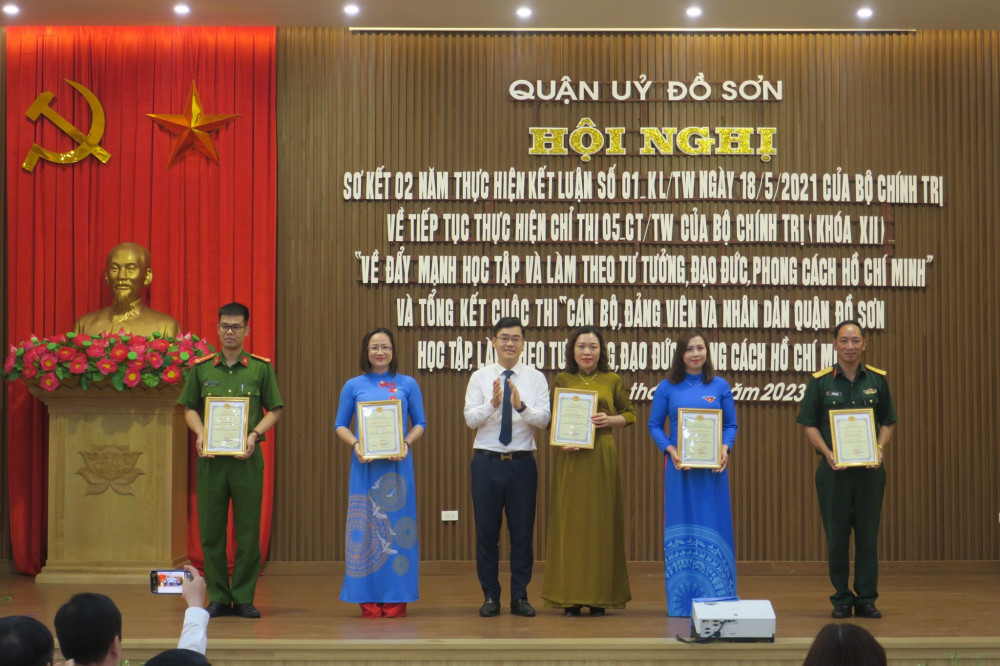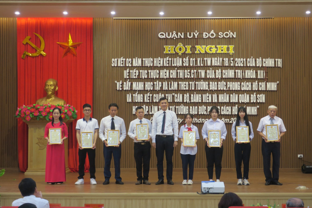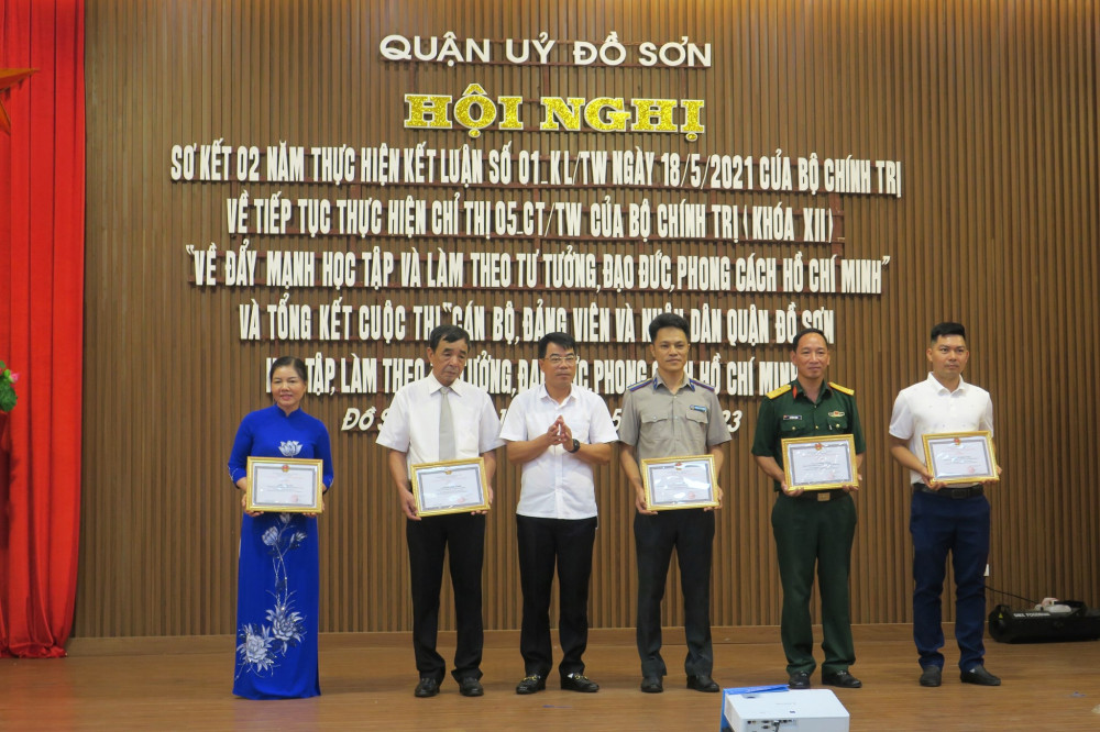 Nhân dịp này, UBND quận Đồ Sơn trao tặng Giấy khen cho 3 tập thể, 5 cá nhân có thành tích xuất sắc trong học tập và làm theo tư tưởng, đạo đức, phong cách Hồ Chí Minh.