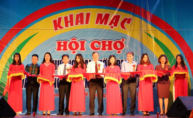 Đại diện Sở Công thương thành phố cùng lãnh đạo quận Đồ Sơn cắt băng khai mạc hội chợ