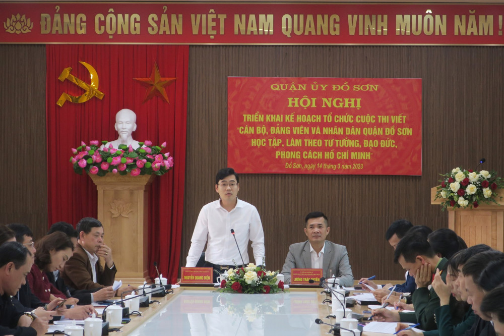 Chiều 14/3, Quận ủy Đồ Sơn tổ chức Hội nghị triển khai Kế hoạch tổ chức Cuộc thi viết “Cán bộ, đảng viên và Nhân dân quận Đồ Sơn học tập, làm theo tư tưởng, đạo đức, phong cách Hồ Chí Minh”. Đồng chí Nguyễn Quang Diện, Phó Bí thư Thường trực Quận ủy chủ trì Hội nghị.