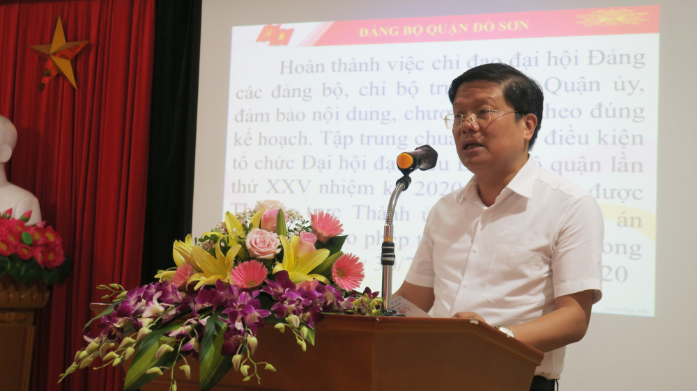 Phát biểu chỉ đạo tại Hội nghị, đồng chí Đào Khánh Hà ghi nhận những kết quả quận Đồ Sơn đã đạt được trong thời gian vừa qua. Đồng chí đề nghị quận tập trung cho công tác chuẩn bị Đại hội đại biểu Đảng bộ quận lần thứ XXV, nhiệm kỳ 2020-2025; nhanh chóng ban hành chương trình hành động triển khai đưa Nghị quyết vào đời sống; tiếp tục hoàn thiện các chỉ tiêu nhiệm vụ đã đề ra trong năm 2020, trong đó có đặc biệt quan tâm chỉ tiêu xây dựng đảng, thu chi ngân sách, đầu tư công; tiếp tục thực hiện tốt chính sách an sinh xã hội; thực hiện tốt các Nghị quyết của HĐND thành phố trong hỗ trợ xây mới, sửa chữa nhà ở cho hộ nghèo; tạo sự đồng thuận trong nhân dân để tổ chức thành công Đại hội Đảng.