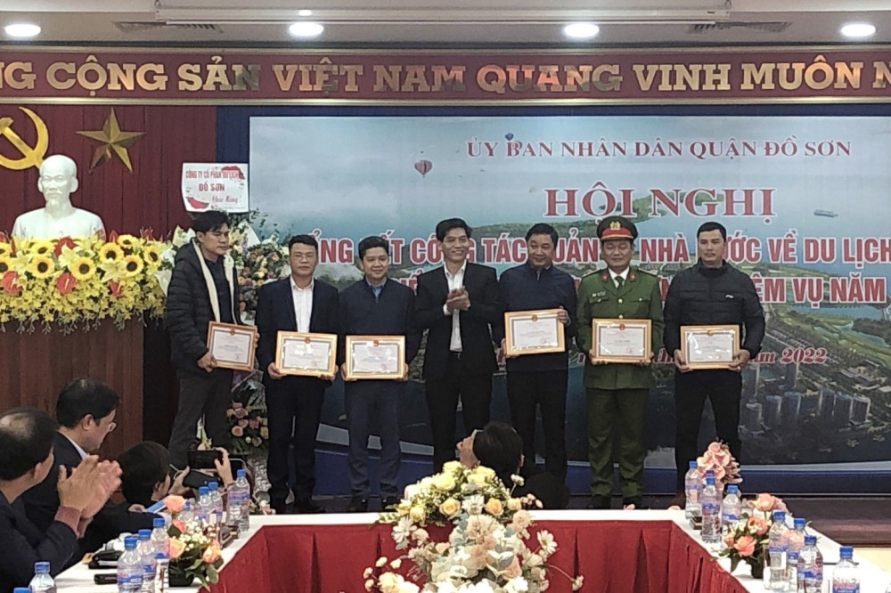 Nhân dịp Hội nghị, UBND quận Đồ Sơn trao tặng Giấy khen cho 5 tập thể và 6 cá nhân có thành tích hoàn thành tốt công tác quản lý nhà nước về hoạt động du lịch quận Đồ Sơn năm 2022.