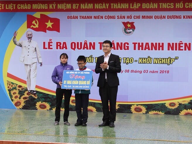 Nhân dịp này, Hội đồng Đội thành phố đã trao tặng Nhà khăn quàng đỏ cho học sinh có hoàn cảnh khó khăn, Quận đoàn Dương Kinh trao quyết định công trình thanh niên cấp cơ sở chào mừng tháng Thanh niên 2018 và quyết định thành lập Chi hội Công ty TNHH Công nghệ Xe điện Việt Thảo.