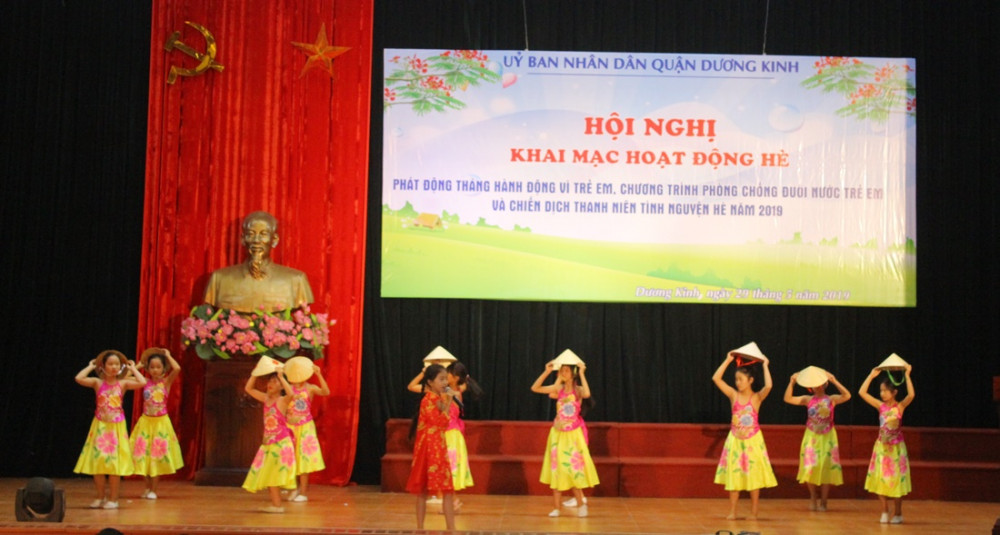 Chiều 29-5, UBND quận Dương Kinh tổ chức Lễ phát động Tháng hành động Vì trẻ em, chương trình phòng chống đuối nước và chiến dịch thanh niên tình nguyện hè năm 2019.