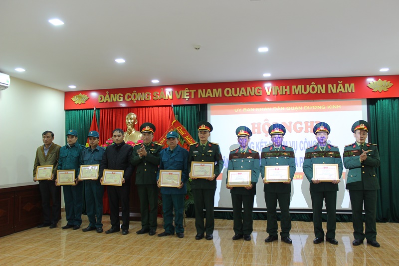 Nhân dịp này các tập thể, cá nhân có thành tích xuất sắc trong công tác quân sự-quốc phòng địa phương năm 2018 trên địa bàn quận Dương Kinh được các cấp biểu dương, khen thưởng.