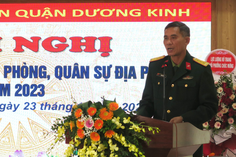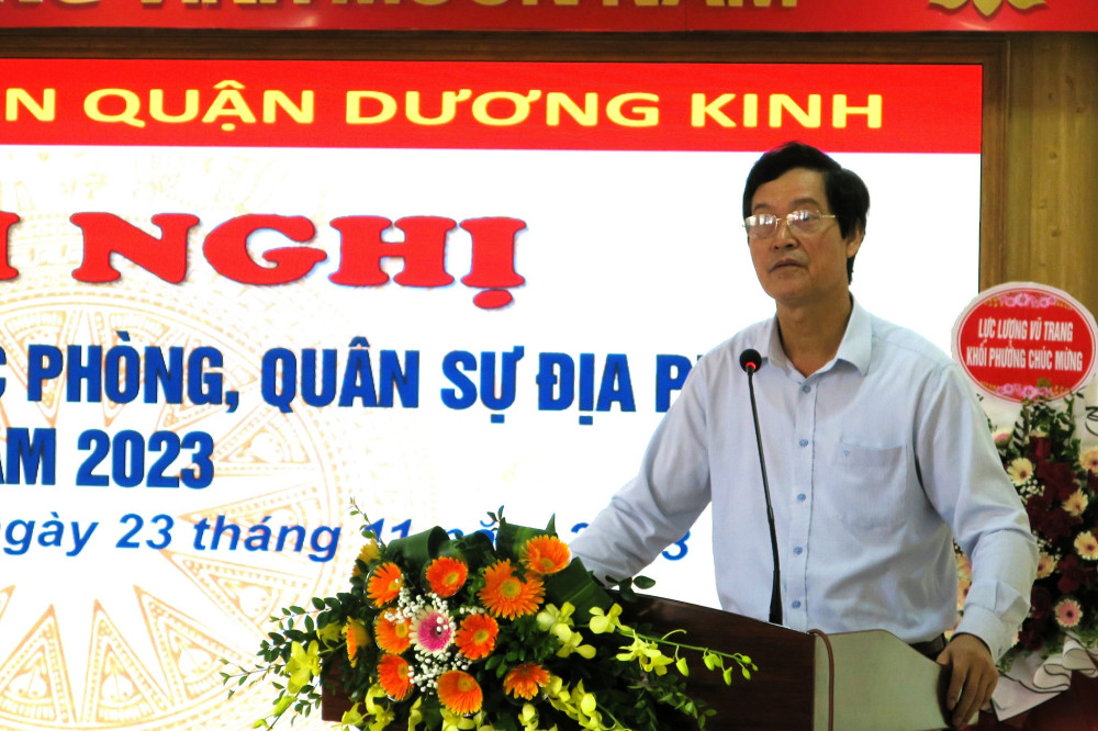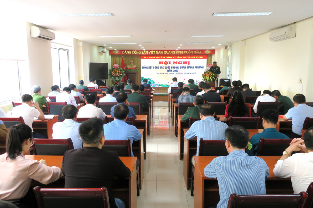 Sáng 23/11, UBND quận Dương Kinh tổ chức Hội nghị Tổng kết công tác quốc phòng, quân sự địa phương năm 2023.